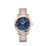 Unworn Omega Seamaster AQUA TERRA 150M CO‑AXIAL MASTER CHRONOMETER 220.20.34.20.03.001. 34 mm, Blue dial, Steel ‑ Sedna™ Gold case, Sedna™ Gold bezel, 8800 calibre, Self Winding Movement, 55 Hours power reserve, Steel ‑ Sedna™ Gold bracelet with Butterfly clasp. Water resistant to 150 m.