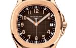 New Patek Philippe Aquanaut Luxury Sports Watch, Date Sweep Seconds, 40,8mm, 18k Rose Gold, Ref. 5167R-001 – reliable and practical, modern and somewhat unexpected, inspired by Nautilus. Their 18k Rose Gold case features a rounded octagon that is unmistakable. A beautiful brown embossed dial looks harmoniously with perfectly readable large applied 18k Rose Gold Arabic numerals with luminescent coating. The time is shown by large stick-shaped hour and minute hands made of 18k Rose Gold with luminescent coating, as well as a thin and elegant second hand (Sweep Seconds). Date indicator in an aperture traditionally located at the 3 o’clock position. A polished 18k Rose Gold screw-down crown with a ribbed edge for a comfortable grip and the Patek Philippe logo create a naturally balanced watch. The dial closed by a Scratch-resistant Sapphire Crystal. Sapphire-crystal too case back, which allows of the case, allows you to see the magical work of the movement. Against this backdrop, the fixed 18k Rose Gold bezel stands out, from satin on the front and polished on the sides, provides a wide view of the dial. The Model has Patek Philippe Caliber 26‑330 S C, with a self-winding mechanical movement containing 30 Jewels, with a power reserve of min. 35 hours – max. 45 hours. This beautiful sport-chic watch presented on a Chocolate brown “tropical” rubber strap, made of a new composite material ultra-resistant to wear, salt water and uv radiation with 18k Rose Gold Aquanaut Fold-over clasp. The water resistance is up to 120m/394ft (12 ATM).
